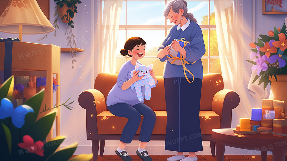 本作品内容为老人和孩子一家温馨相处插画, 格式为 jpg, 大小6 MB, 图片尺寸为2912 x 1632, 源文件无水印, 欢迎使用熊猫办公。 如认为平台内容涉嫌侵权,可通过邮件:tousu@tukuppt.com提出书面通知,我们将及时处理。
