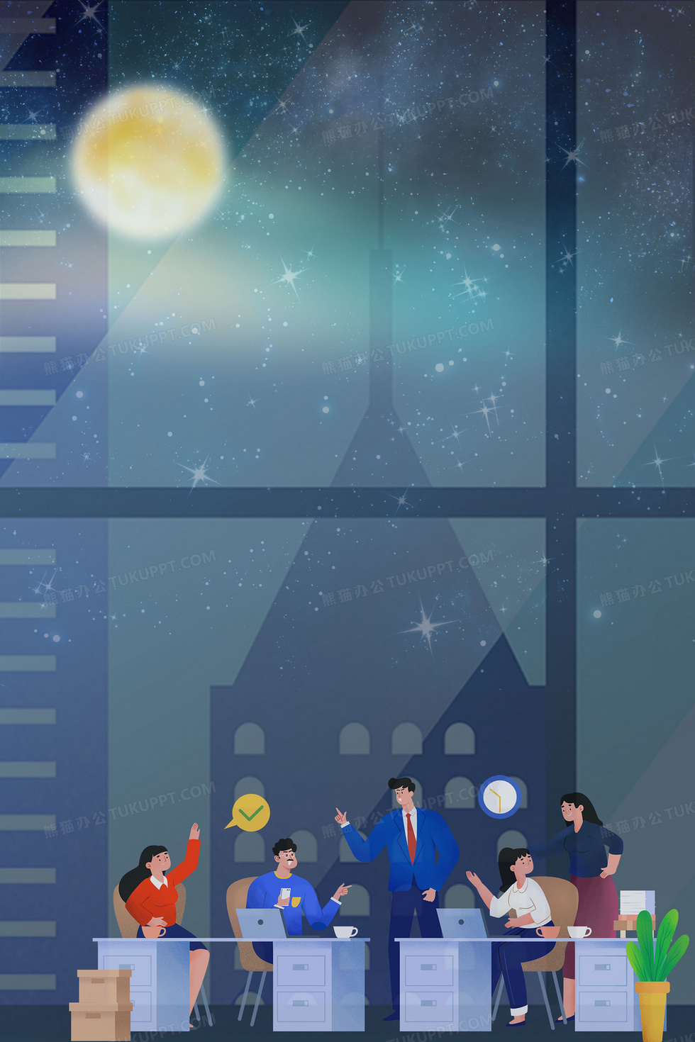 本作品内容为简约大气熬夜加班背景, 格式为 psd, 大小86 MB, 图片尺寸为3543 x 5315, 作品中背景图片无需修改, 源文件无水印,可以直接使用, 欢迎使用熊猫办公。 如认为平台内容涉嫌侵权,可通过邮件:tousu@tukuppt.com提出书面通知,我们将及时处理。