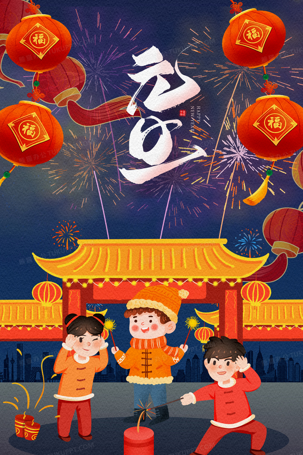 本作品内容为元旦烟花儿童庆祝插画, 格式为 psd, 大小365 MB, 请使用软件PhotoShop(CC)打开, 源文件无水印, 欢迎使用熊猫办公。 如认为平台内容涉嫌侵权,可通过邮件:tousu@tukuppt.com提出书面通知,我们将及时处理。