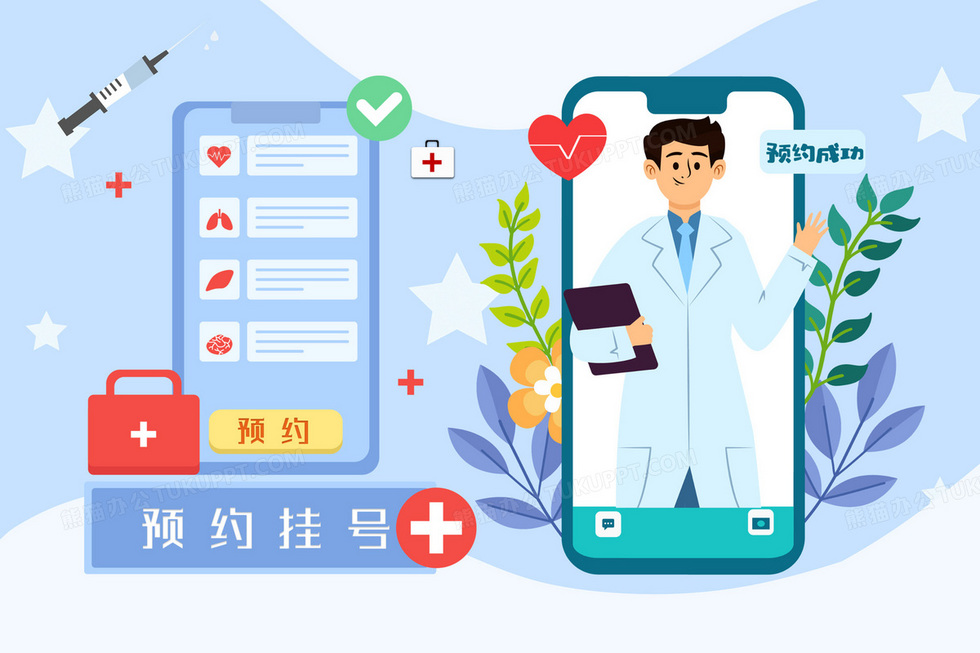 本作品内容为预约医生挂号创意插画, 格式为 psd, 大小3 MB, 请使用软件PhotoShop(CC)打开, 源文件无水印, 欢迎使用熊猫办公。 如认为平台内容涉嫌侵权,可通过邮件:tousu@tukuppt.com提出书面通知,我们将及时处理。