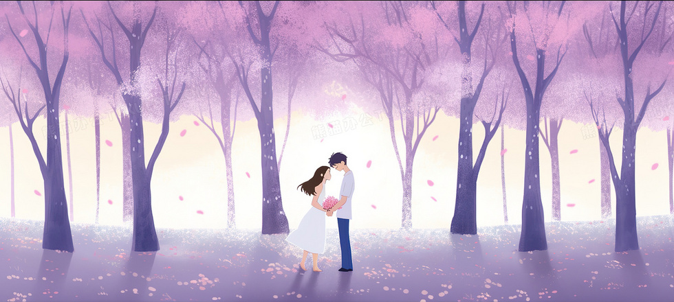 本作品内容为情人节树林里表白的情侣插画, 格式为 jpg, 大小3 MB, 图片尺寸为2912 x 1308, 源文件无水印, 欢迎使用熊猫办公。 如认为平台内容涉嫌侵权,可通过邮件:tousu@tukuppt.com提出书面通知,我们将及时处理。