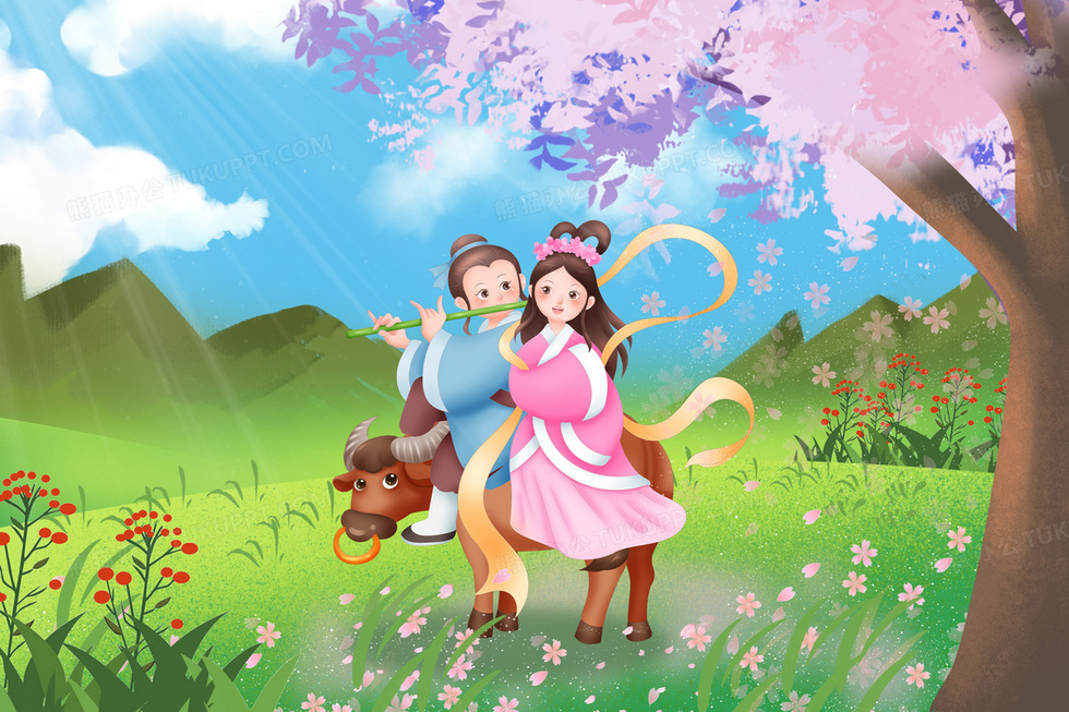 本作品内容为七夕牛郎织女骑牛插画海报, 格式为 psd, 大小65 MB, 请使用软件PhotoShop(CC)打开, 源文件无水印, 欢迎使用熊猫办公。 如认为平台内容涉嫌侵权,可通过邮件:tousu@tukuppt.com提出书面通知,我们将及时处理。