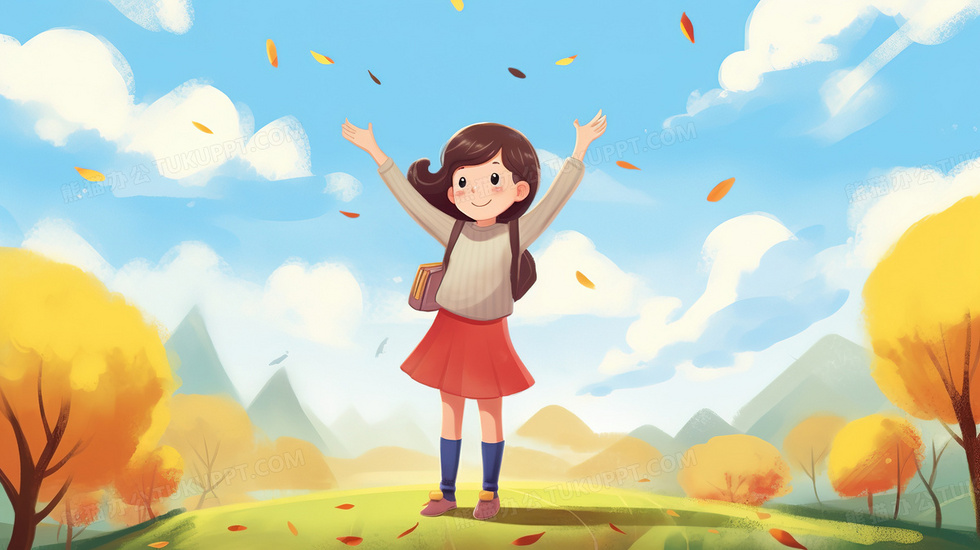 本作品内容为卡通秋季可爱的女孩在郊外拥抱自然, 格式为 jpg, 大小3 MB, 图片尺寸为2912 x 1632, 源文件无水印, 欢迎使用熊猫办公。 如认为平台内容涉嫌侵权,可通过邮件:tousu@tukuppt.com提出书面通知,我们将及时处理。