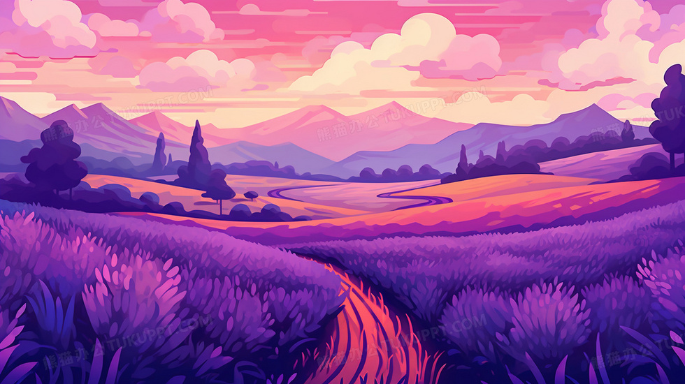 本作品内容为紫色唯美薰衣草风景插画, 格式为 jpg, 大小4 MB, 图片尺寸为2912 x 1632, 源文件无水印, 欢迎使用熊猫办公。 如认为平台内容涉嫌侵权,可通过邮件:tousu@tukuppt.com提出书面通知,我们将及时处理。