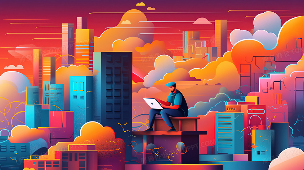 本作品内容为彩色商务城市中的办公人士插画, 格式为 jpg, 大小6 MB, 图片尺寸为2912 x 1632, 源文件无水印, 欢迎使用熊猫办公。 如认为平台内容涉嫌侵权,可通过邮件:tousu@tukuppt.com提出书面通知,我们将及时处理。
