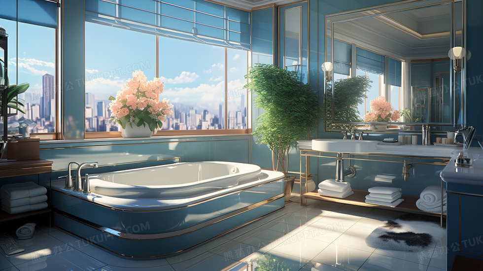 本作品内容为干净整洁的浴室卫生间场景插画, 格式为 jpg, 大小6 MB, 图片尺寸为2912 x 1632, 源文件无水印, 欢迎使用熊猫办公。 如认为平台内容涉嫌侵权,可通过邮件:tousu@tukuppt.com提出书面通知,我们将及时处理。