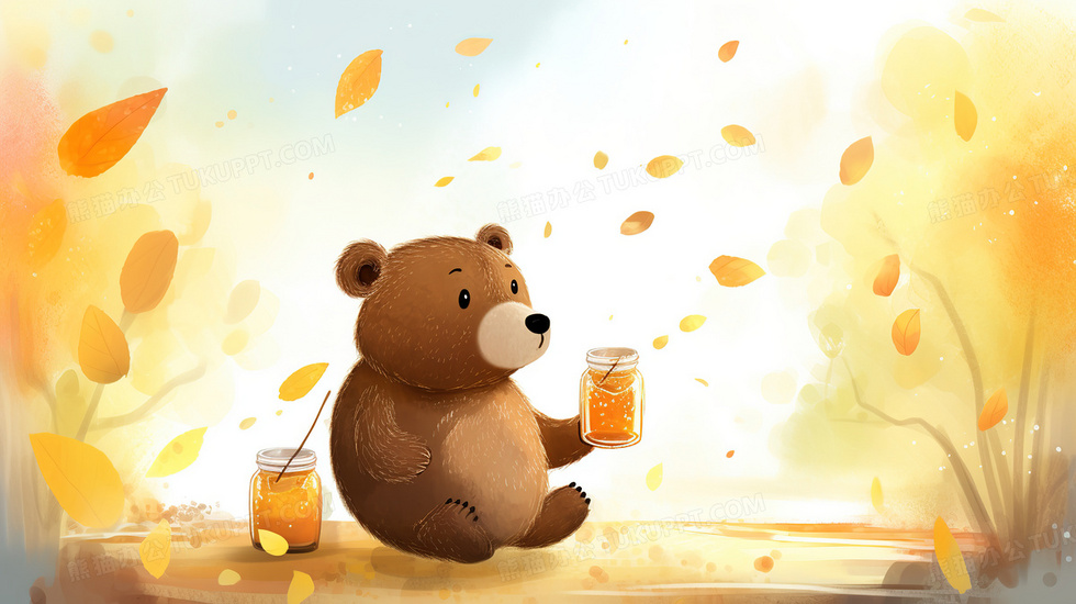 本作品内容为金色落叶下吃蜂蜜的卡通小熊插画, 格式为 jpg, 大小5 MB, 图片尺寸为2912 x 1632, 源文件无水印, 欢迎使用熊猫办公。 如认为平台内容涉嫌侵权,可通过邮件:tousu@tukuppt.com提出书面通知,我们将及时处理。