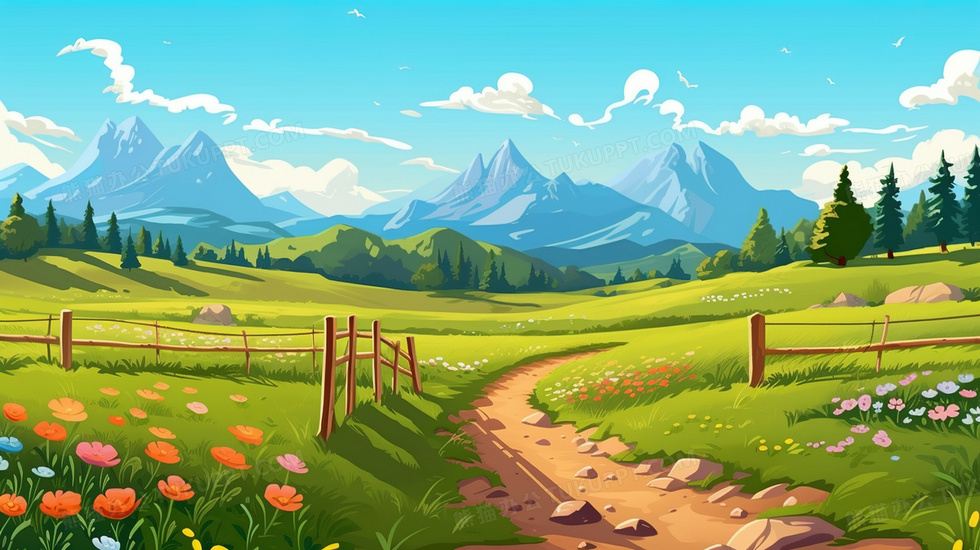 本作品内容为绿色唯美牧场风景插画, 格式为 jpg, 大小5 MB, 图片尺寸为2912 x 1632, 源文件无水印, 欢迎使用熊猫办公。 如认为平台内容涉嫌侵权,可通过邮件:tousu@tukuppt.com提出书面通知,我们将及时处理。