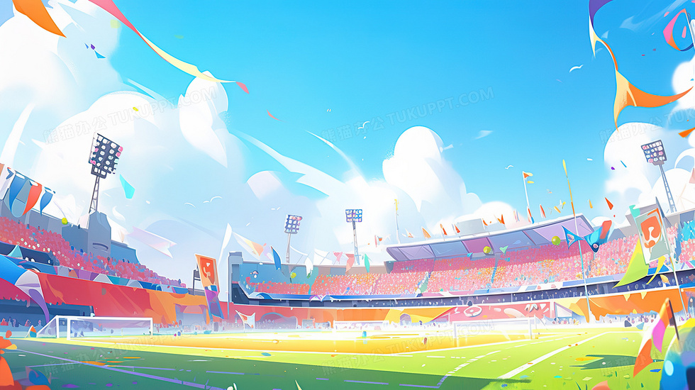 本作品内容为卡通风室外足球场比赛场地绿色草坪创意插画, 格式为 jpg, 大小5 MB, 图片尺寸为2912 x 1632, 源文件无水印, 欢迎使用熊猫办公。 如认为平台内容涉嫌侵权,可通过邮件:tousu@tukuppt.com提出书面通知,我们将及时处理。