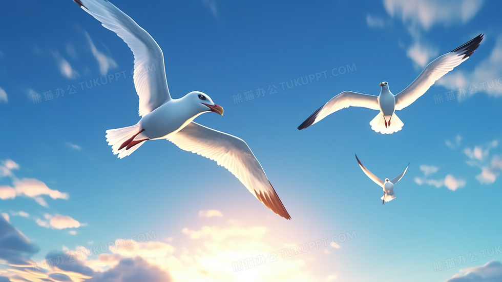 本作品内容为飞翔在天空中的白色海鸥卡通插画, 格式为 jpg, 大小5 MB, 图片尺寸为2912 x 1632, 源文件无水印, 欢迎使用熊猫办公。 如认为平台内容涉嫌侵权,可通过邮件:tousu@tukuppt.com提出书面通知,我们将及时处理。