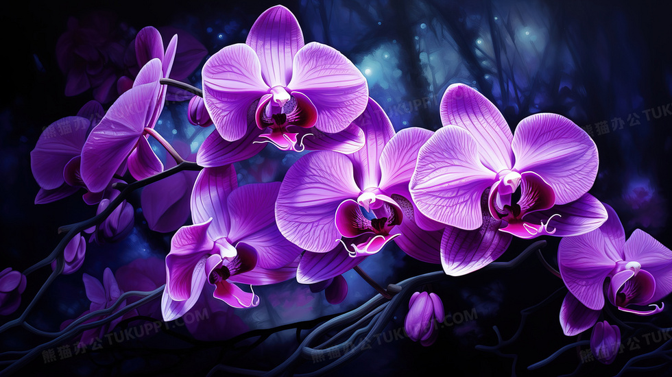 本作品内容为树林里盛开的蝴蝶兰插画, 格式为 jpg, 大小6 MB, 图片尺寸为2912 x 1632, 源文件无水印, 欢迎使用熊猫办公。 如认为平台内容涉嫌侵权,可通过邮件:tousu@tukuppt.com提出书面通知,我们将及时处理。