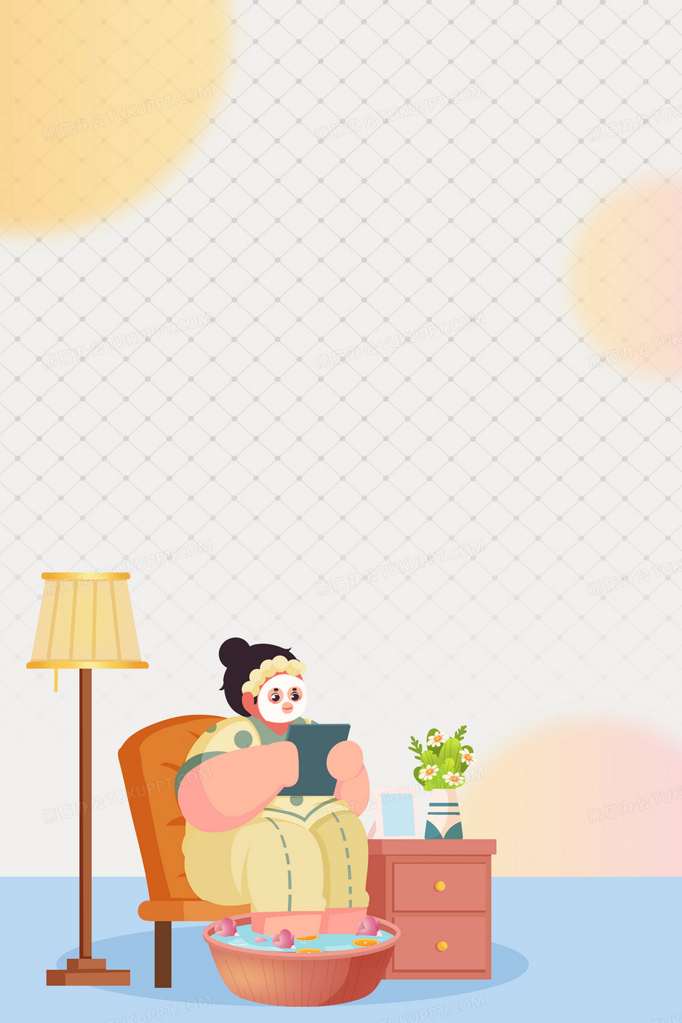 本作品内容为卡通文艺泡脚合成背景, 格式为 psd, 大小24 MB, 图片尺寸为3543 x 5315, 作品中背景图片无需修改, 源文件无水印,可以直接使用, 欢迎使用熊猫办公。 如认为平台内容涉嫌侵权,可通过邮件:tousu@tukuppt.com提出书面通知,我们将及时处理。