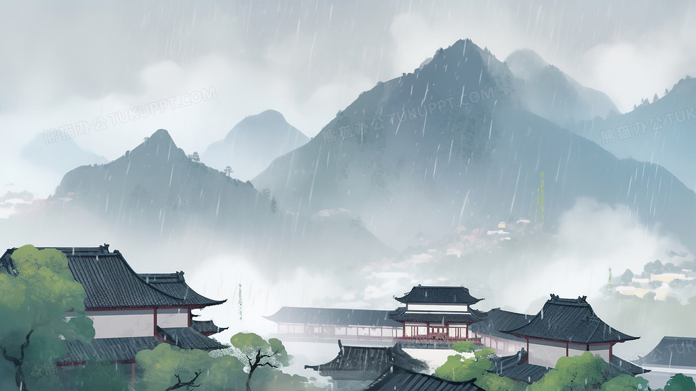 本作品内容为清明节气美丽的雨中村庄插画, 格式为 jpg, 大小3 MB, 图片尺寸为2720 x 1530, 源文件无水印, 欢迎使用熊猫办公。 如认为平台内容涉嫌侵权,可通过邮件:tousu@tukuppt.com提出书面通知,我们将及时处理。