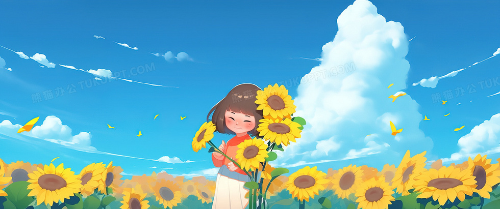 本作品内容为立夏节气向日葵女孩创意插画, 格式为 jpg, 大小2 MB, 图片尺寸为2912 x 1220, 源文件无水印, 欢迎使用熊猫办公。 如认为平台内容涉嫌侵权,可通过邮件:tousu@tukuppt.com提出书面通知,我们将及时处理。