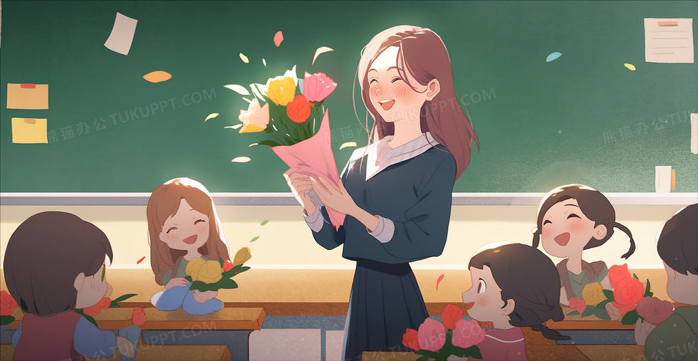 本作品内容为教师节学生给老师献花插画, 格式为 jpg, 大小2 MB, 图片尺寸为2912 x 1506, 源文件无水印, 欢迎使用熊猫办公。 如认为平台内容涉嫌侵权,可通过邮件:tousu@tukuppt.com提出书面通知,我们将及时处理。
