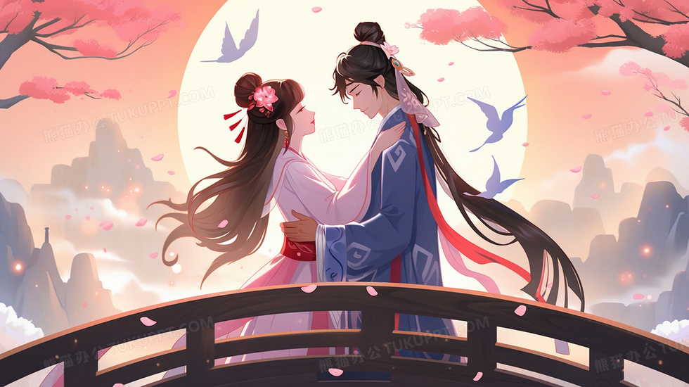 本作品内容为七夕情人节牛郎织女相会插画, 格式为 jpg, 大小2 MB, 图片尺寸为2912 x 1632, 源文件无水印, 欢迎使用熊猫办公。 如认为平台内容涉嫌侵权,可通过邮件:tousu@tukuppt.com提出书面通知,我们将及时处理。