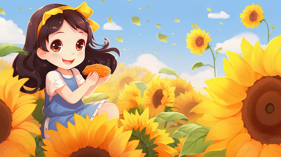本作品内容为夏日向日葵中的小女孩插画, 格式为 jpg, 大小5 MB, 图片尺寸为2912 x 1632, 源文件无水印, 欢迎使用熊猫办公。 如认为平台内容涉嫌侵权,可通过邮件:tousu@tukuppt.com提出书面通知,我们将及时处理。