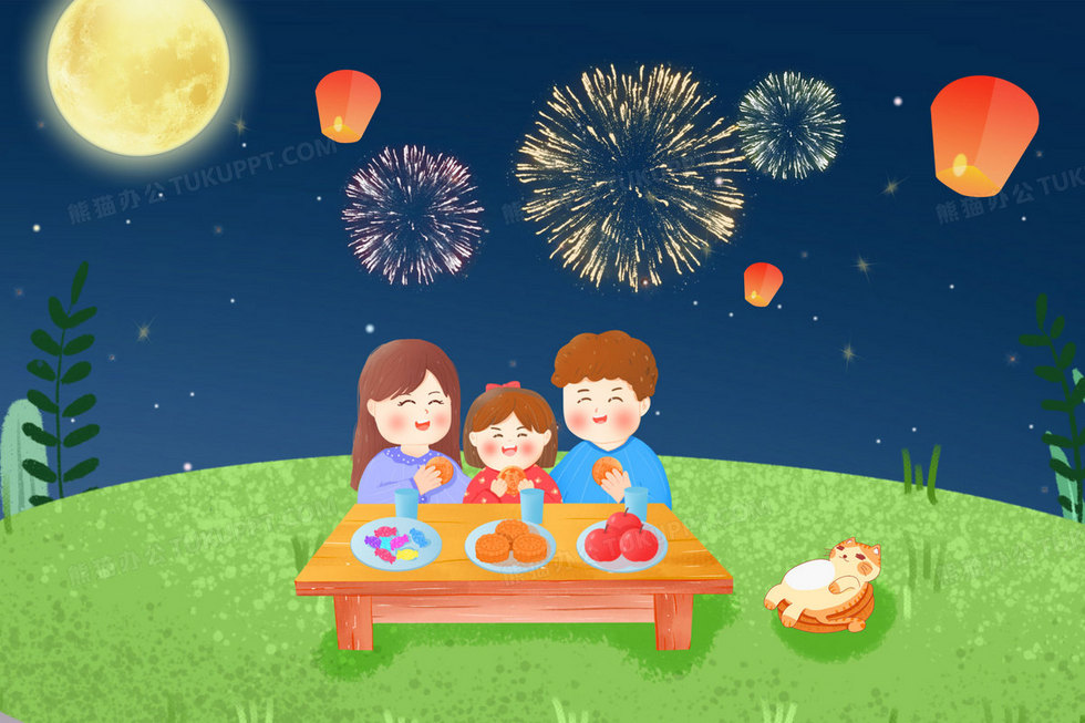 本作品内容为中秋节一家人户外吃月饼背景插画, 格式为 psd, 大小17 MB, 请使用软件PhotoShop(CC)打开, 源文件无水印, 欢迎使用熊猫办公。 如认为平台内容涉嫌侵权,可通过邮件:tousu@tukuppt.com提出书面通知,我们将及时处理。