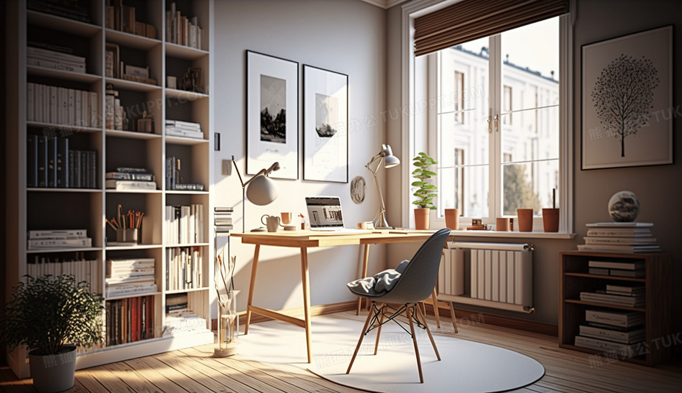 首页 > 插画 > 科技艺术 > 其他 > 温馨家居书房装饰设计
