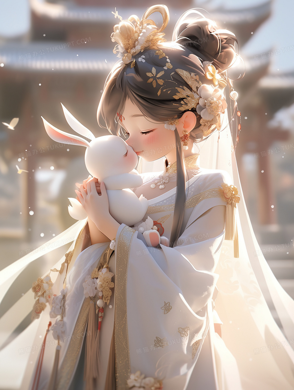 本作品内容为嫦娥仙子和玉兔中秋节创意插画, 格式为 jpg, 大小5 MB, 图片尺寸为1856 x 2464, 源文件无水印, 欢迎使用熊猫办公。 如认为平台内容涉嫌侵权,可通过邮件:tousu@tukuppt.com提出书面通知,我们将及时处理。