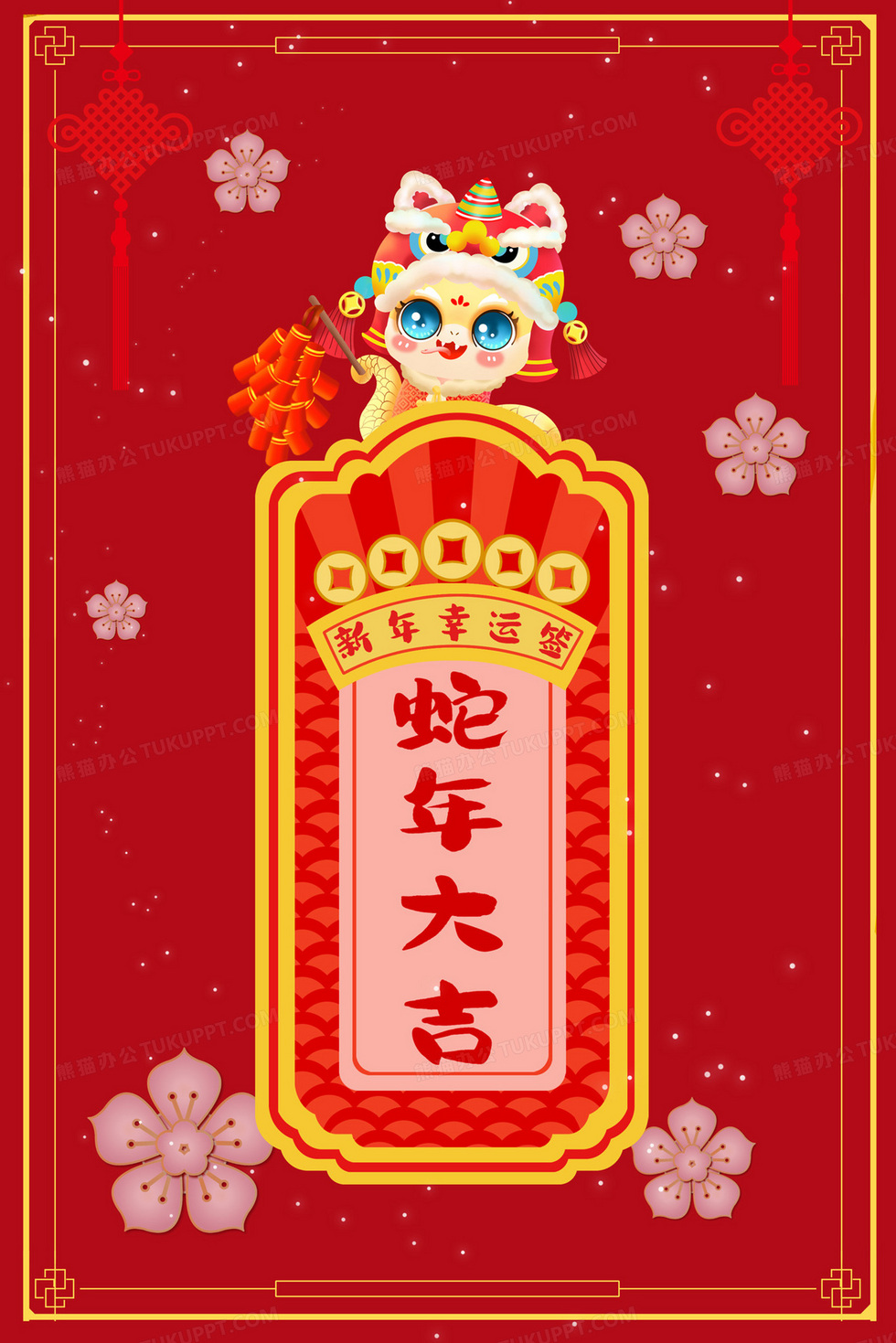 本作品内容为蛇年大吉卡通插画, 格式为 psd, 大小23 MB, 请使用软件PhotoShop(CC)打开, 源文件无水印, 欢迎使用熊猫办公。 如认为平台内容涉嫌侵权,可通过邮件:tousu@tukuppt.com提出书面通知,我们将及时处理。