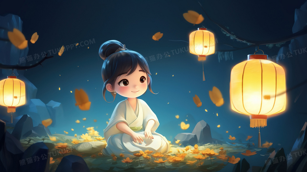 本作品内容为夜晚灯笼烛光照耀下的古代少女插画, 格式为 jpg, 大小4 MB, 图片尺寸为2912 x 1632, 源文件无水印, 欢迎使用熊猫办公。 如认为平台内容涉嫌侵权,可通过邮件:tousu@tukuppt.com提出书面通知,我们将及时处理。