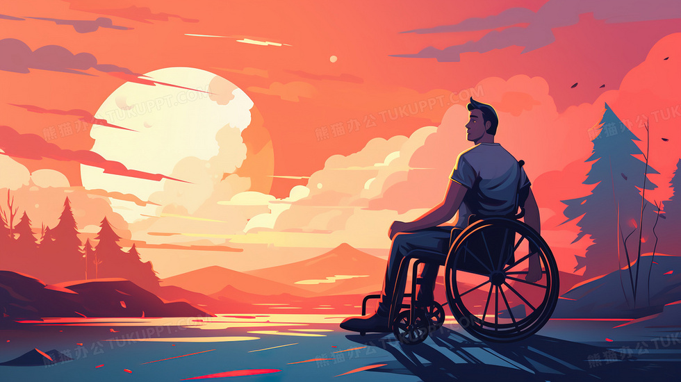 本作品内容为轮椅上的残疾人插画, 格式为 jpg, 大小4 MB, 图片尺寸为2912 x 1632, 源文件无水印, 欢迎使用熊猫办公。 如认为平台内容涉嫌侵权,可通过邮件:tousu@tukuppt.com提出书面通知,我们将及时处理。