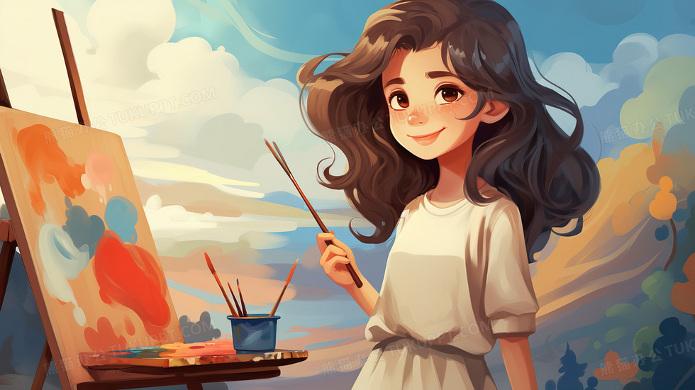 本作品内容为可爱的女孩在开心的画画创意插画, 格式为 jpg, 大小5 MB, 图片尺寸为2912 x 1632, 源文件无水印, 欢迎使用熊猫办公。 如认为平台内容涉嫌侵权,可通过邮件:tousu@tukuppt.com提出书面通知,我们将及时处理。