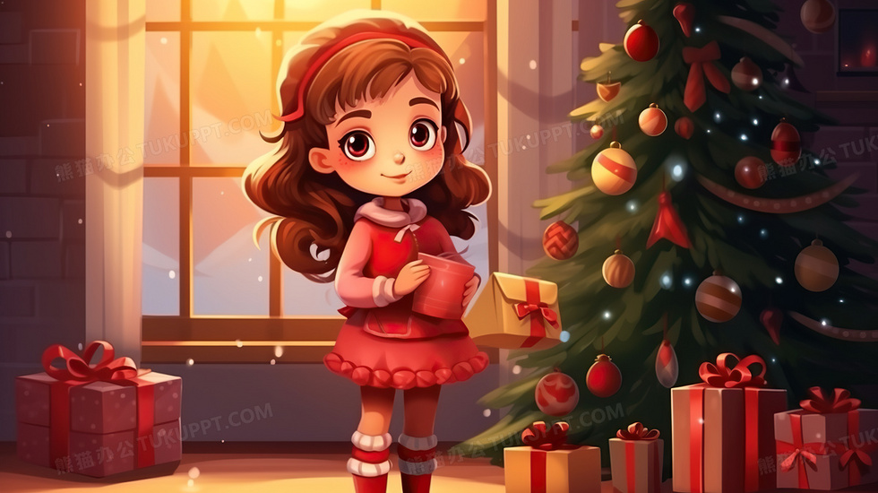 本作品内容为卡通圣诞节女孩圣诞礼物节日插画, 格式为 jpg, 大小5 MB, 图片尺寸为2912 x 1632, 源文件无水印, 欢迎使用熊猫办公。 如认为平台内容涉嫌侵权,可通过邮件:tousu@tukuppt.com提出书面通知,我们将及时处理。