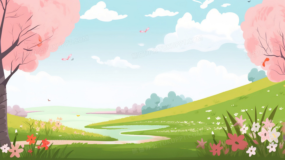 本作品内容为草地溪流边的粉色樱花树插画, 格式为 jpg, 大小4 MB, 图片尺寸为2912 x 1632, 源文件无水印, 欢迎使用熊猫办公。 如认为平台内容涉嫌侵权,可通过邮件:tousu@tukuppt.com提出书面通知,我们将及时处理。