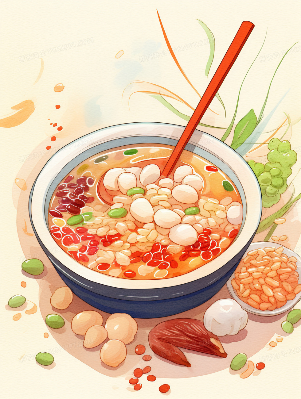 本作品内容为五谷杂粮美味八宝粥美食插画, 格式为 jpg, 大小6 MB, 图片尺寸为1856 x 2464, 源文件无水印, 欢迎使用熊猫办公。 如认为平台内容涉嫌侵权,可通过邮件:tousu@tukuppt.com提出书面通知,我们将及时处理。