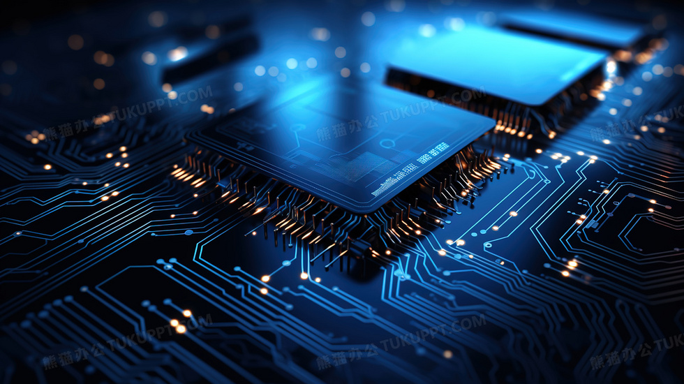 本作品内容为蓝色科技感芯片概念图片, 格式为 jpg, 大小5 MB, 图片尺寸为2912 x 1632, 源文件无水印, 欢迎使用熊猫办公。 如认为平台内容涉嫌侵权,可通过邮件:tousu@tukuppt.com提出书面通知,我们将及时处理。