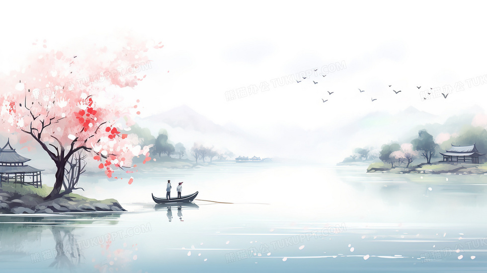 本作品内容为中国风湖边唯美风景水墨插画, 格式为 jpg, 大小4 MB, 图片尺寸为2912 x 1632, 源文件无水印, 欢迎使用熊猫办公。 如认为平台内容涉嫌侵权,可通过邮件:tousu@tukuppt.com提出书面通知,我们将及时处理。