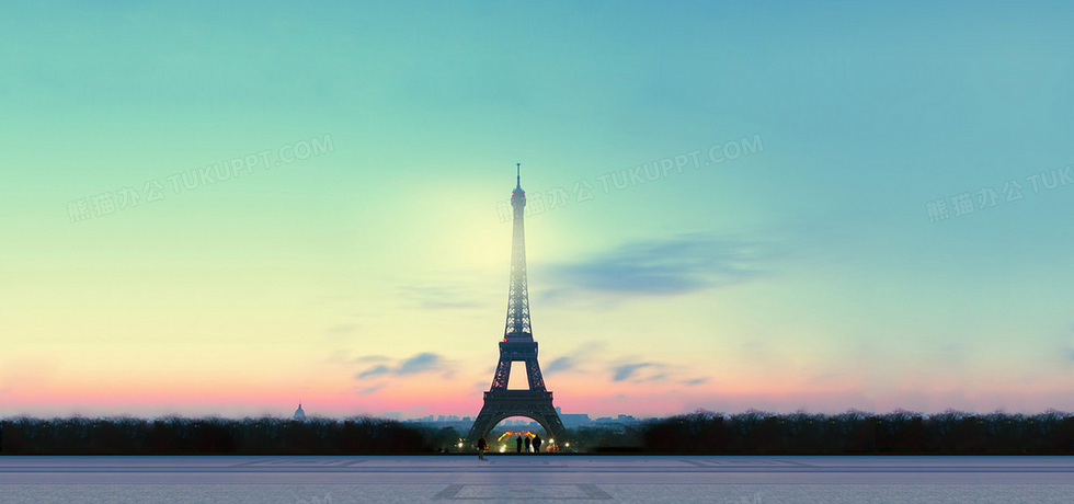 本作品内容为巴黎铁塔, 格式为 jpg, 图片尺寸为1920 x 900, 作品中背景图片无需修改, 源文件无水印,可以直接使用, 欢迎使用熊猫办公。 如认为平台内容涉嫌侵权,可通过邮件:tousu@tukuppt.com提出书面通知,我们将及时处理。