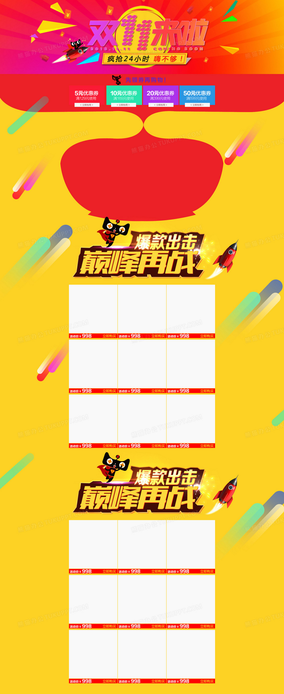 本作品内容为双十一首页背景模板, 格式为 psd, 图片尺寸为1920 x 4688, 作品中背景图片无需修改, 源文件无水印,可以直接使用, 欢迎使用熊猫办公。 如认为平台内容涉嫌侵权,可通过邮件:tousu@tukuppt.com提出书面通知,我们将及时处理。