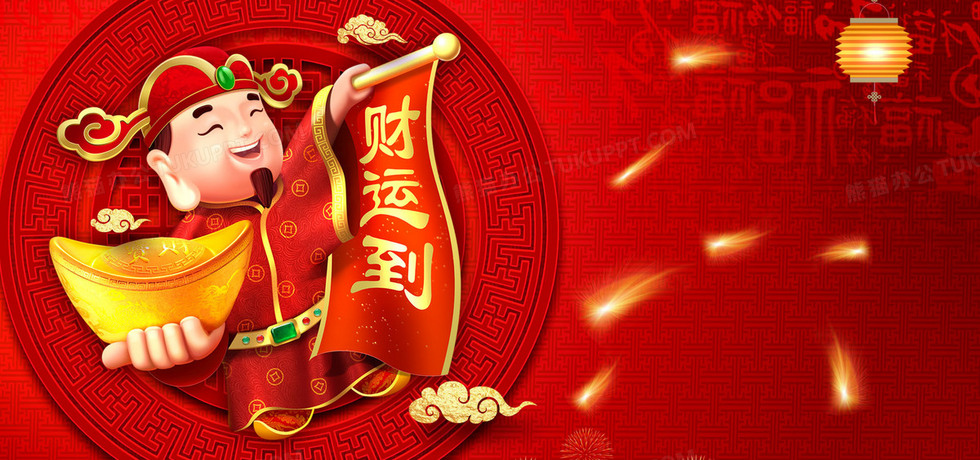 本作品内容为财神财运新年红色背景海报, 格式为 psd, 图片尺寸为1920 x 900, 作品中背景图片无需修改, 源文件无水印,可以直接使用, 欢迎使用熊猫办公。 如认为平台内容涉嫌侵权,可通过邮件:tousu@tukuppt.com提出书面通知,我们将及时处理。