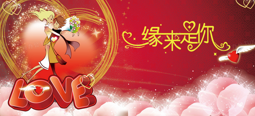 本作品内容为爱情背景, 格式为 psd, 图片尺寸为1920 x 880, 作品中背景图片无需修改, 源文件无水印,可以直接使用, 欢迎使用熊猫办公。 如认为平台内容涉嫌侵权,可通过邮件:tousu@tukuppt.com提出书面通知,我们将及时处理。