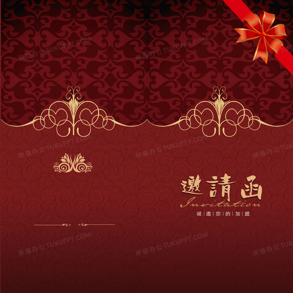 本作品内容为红色古典年会主题邀请函背景, 格式为 psd, 图片尺寸为2362 x 2362, 作品中背景图片无需修改, 源文件无水印,可以直接使用, 欢迎使用熊猫办公。 如认为平台内容涉嫌侵权,可通过邮件:tousu@tukuppt.com提出书面通知,我们将及时处理。