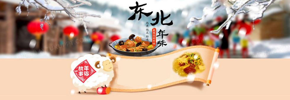本作品内容为中国风东北年味背景banner, 格式为 psd, 图片尺寸为1920 x 667, 作品中背景图片无需修改, 源文件无水印,可以直接使用, 欢迎使用熊猫办公。 如认为平台内容涉嫌侵权,可通过邮件:tousu@tukuppt.com提出书面通知,我们将及时处理。