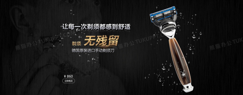 本作品内容为男士剃须刀淘宝背景, 格式为 psd, 图片尺寸为1920 x 751, 作品中背景图片无需修改, 源文件无水印,可以直接使用, 欢迎使用熊猫办公。 如认为平台内容涉嫌侵权,可通过邮件:tousu@tukuppt.com提出书面通知,我们将及时处理。