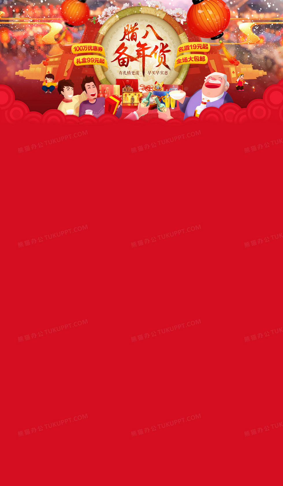 本作品内容为腊八年货节背景素材, 格式为 jpg, 图片尺寸为2174 x 3726, 作品中背景图片无需修改, 源文件无水印,可以直接使用, 欢迎使用熊猫办公。 如认为平台内容涉嫌侵权,可通过邮件:tousu@tukuppt.com提出书面通知,我们将及时处理。