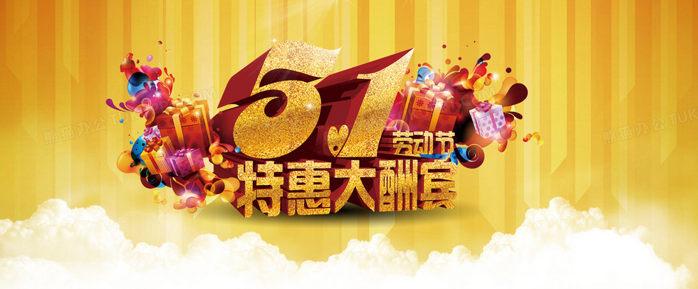 本作品内容为51劳动节特惠, 格式为 psd, 图片尺寸为1920 x 795, 作品中背景图片无需修改, 源文件无水印,可以直接使用, 欢迎使用熊猫办公。 如认为平台内容涉嫌侵权,可通过邮件:tousu@tukuppt.com提出书面通知,我们将及时处理。