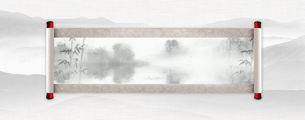 本作品内容为中国风水墨卷轴背景, 格式为 psd, 图片尺寸为1920 x 760, 作品中背景图片无需修改, 源文件无水印,可以直接使用, 欢迎使用熊猫办公。 如认为平台内容涉嫌侵权,可通过邮件:tousu@tukuppt.com提出书面通知,我们将及时处理。
