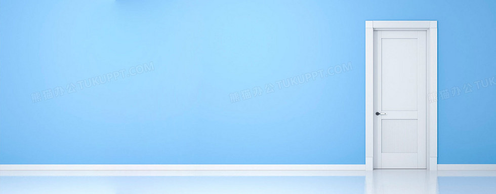 本作品内容为家居蓝色墙壁白色门清新背景, 格式为 jpg, 图片尺寸为1920 x 750, 作品中背景图片无需修改, 源文件无水印,可以直接使用, 欢迎使用熊猫办公。 如认为平台内容涉嫌侵权,可通过邮件:tousu@tukuppt.com提出书面通知,我们将及时处理。