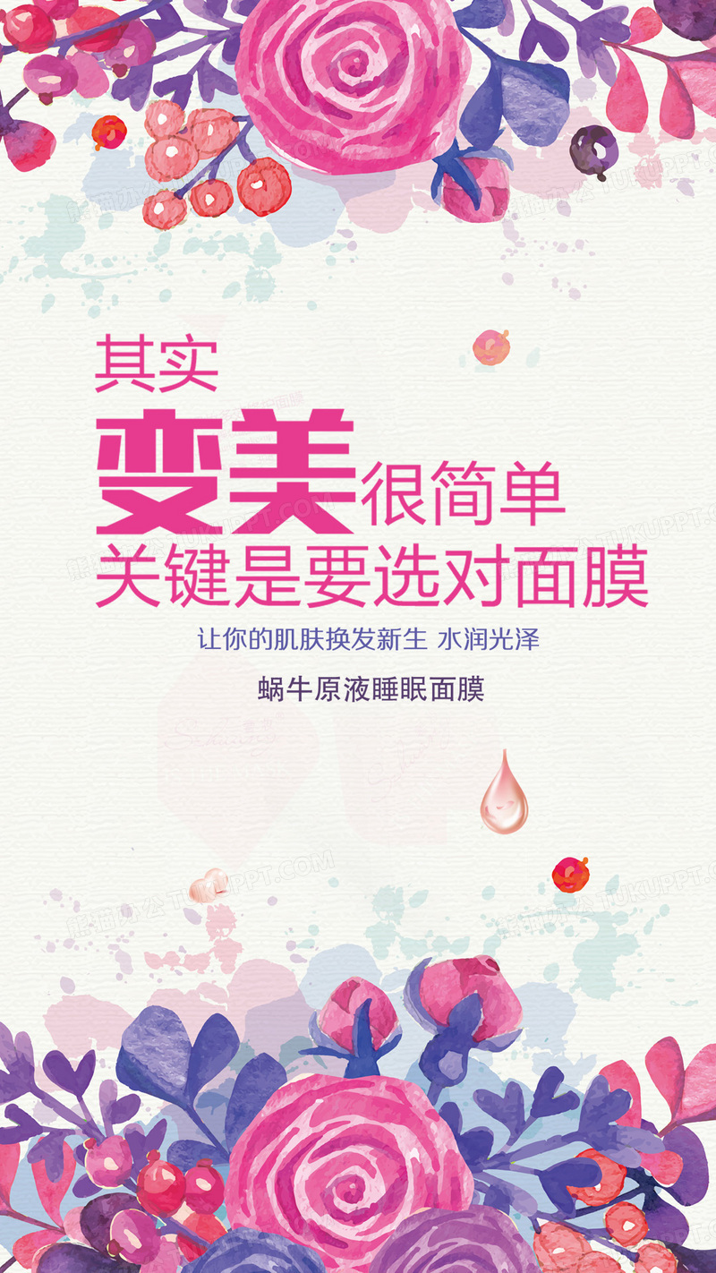 本作品内容为简约面膜PSD分层H5背景素材, 格式为 psd, 图片尺寸为1080 x 1920, 作品中背景图片无需修改, 源文件无水印,可以直接使用, 欢迎使用熊猫办公。 如认为平台内容涉嫌侵权,可通过邮件:tousu@tukuppt.com提出书面通知,我们将及时处理。