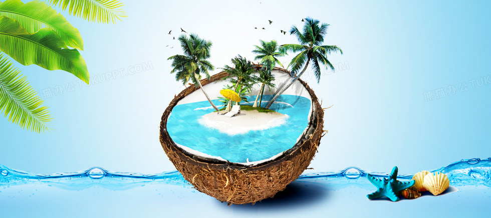 本作品内容为淘宝夏天椰子岛屿创意海星海报背景, 格式为 psd, 图片尺寸为1920 x 854, 作品中背景图片无需修改, 源文件无水印,可以直接使用, 欢迎使用熊猫办公。 如认为平台内容涉嫌侵权,可通过邮件:tousu@tukuppt.com提出书面通知,我们将及时处理。