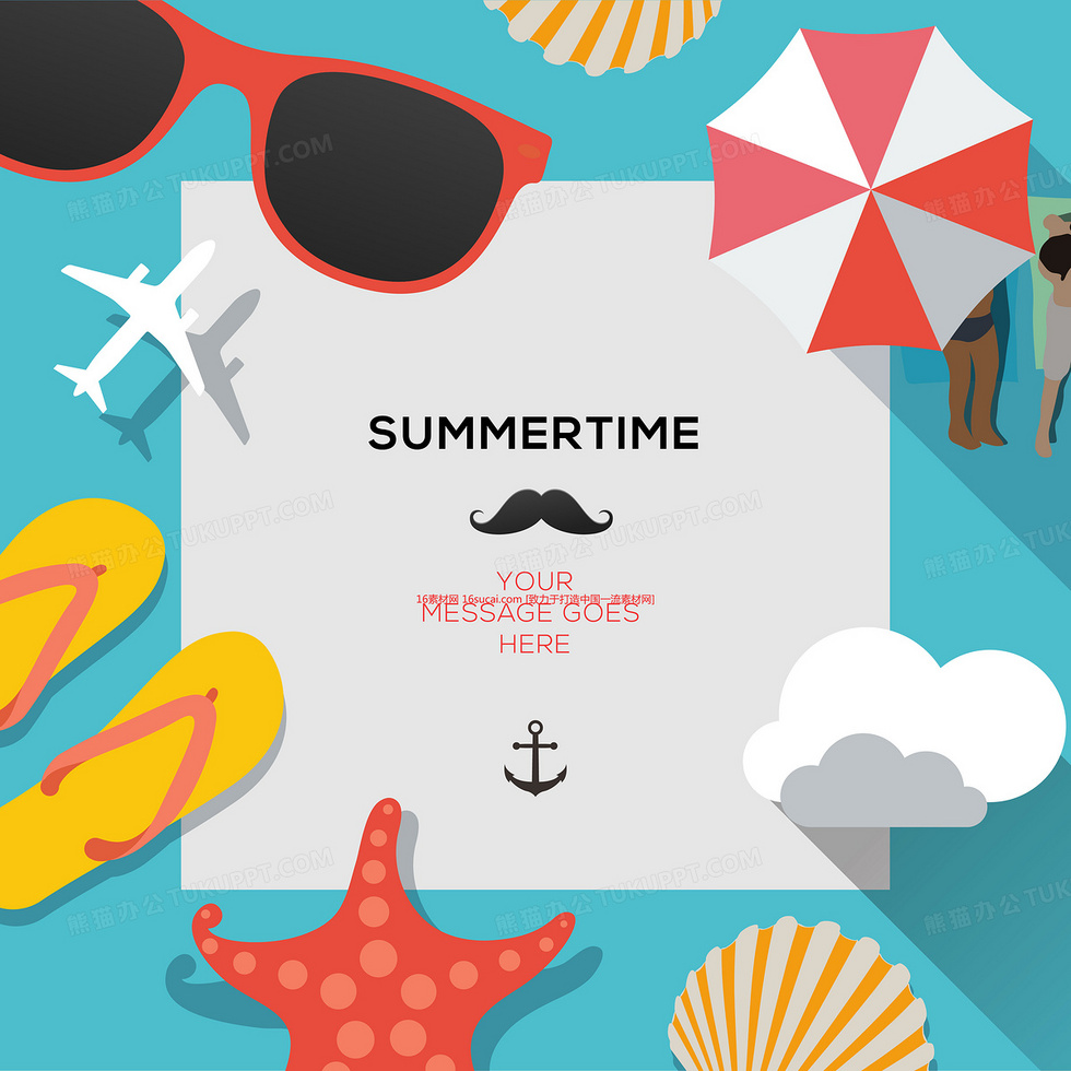 本作品内容为扁平化夏日度假元素矢量背景素材, 格式为 eps, 图片尺寸为4167 x 4167, 作品中背景图片无需修改, 源文件无水印,可以直接使用, 欢迎使用熊猫办公。 如认为平台内容涉嫌侵权,可通过邮件:tousu@tukuppt.com提出书面通知,我们将及时处理。