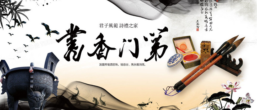 本作品内容为中国风文房四宝, 格式为 psd, 图片尺寸为1920 x 822, 作品中背景图片无需修改, 源文件无水印,可以直接使用, 欢迎使用熊猫办公。 如认为平台内容涉嫌侵权,可通过邮件:tousu@tukuppt.com提出书面通知,我们将及时处理。