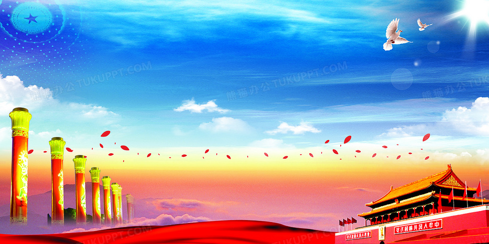 本作品内容为大气国庆盛惠宣传展板, 格式为 psd, 图片尺寸为7087 x 3543, 作品中背景图片无需修改, 源文件无水印,可以直接使用, 欢迎使用熊猫办公。 如认为平台内容涉嫌侵权,可通过邮件:tousu@tukuppt.com提出书面通知,我们将及时处理。