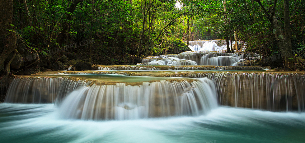 本作品内容为林间溪流瀑布风光背景图, 格式为 jpg, 图片尺寸为1920 x 900, 作品中背景图片无需修改, 源文件无水印,可以直接使用, 欢迎使用熊猫办公。 如认为平台内容涉嫌侵权,可通过邮件:tousu@tukuppt.com提出书面通知,我们将及时处理。